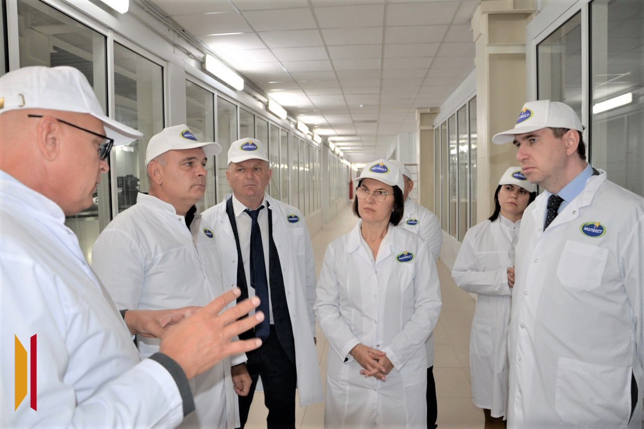 Третьим предприятием в программе визита Данила Кустова стал Калачеевский сырзавод холдинга «Молвест». Это одно из крупнейших в России производств сыров, сливочного масла, сухого молока, пермеата, концентрата молочных белков. Предприятие динамично развивается и сейчас готовится к строительству нового цеха по переработке молока и молочной сыворотки. Стоимость проекта – более 8,5 млрд рублей. Гендиректор «Молвеста» Анатолий Лосев и руководитель производства Светлана Кузнецова провели для гостей экскурсию по цехам. Затем они вместе с Данилом Кустовым обсудили вопросы модернизации инфраструктуры для расширения производства.