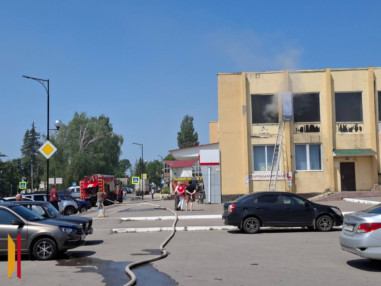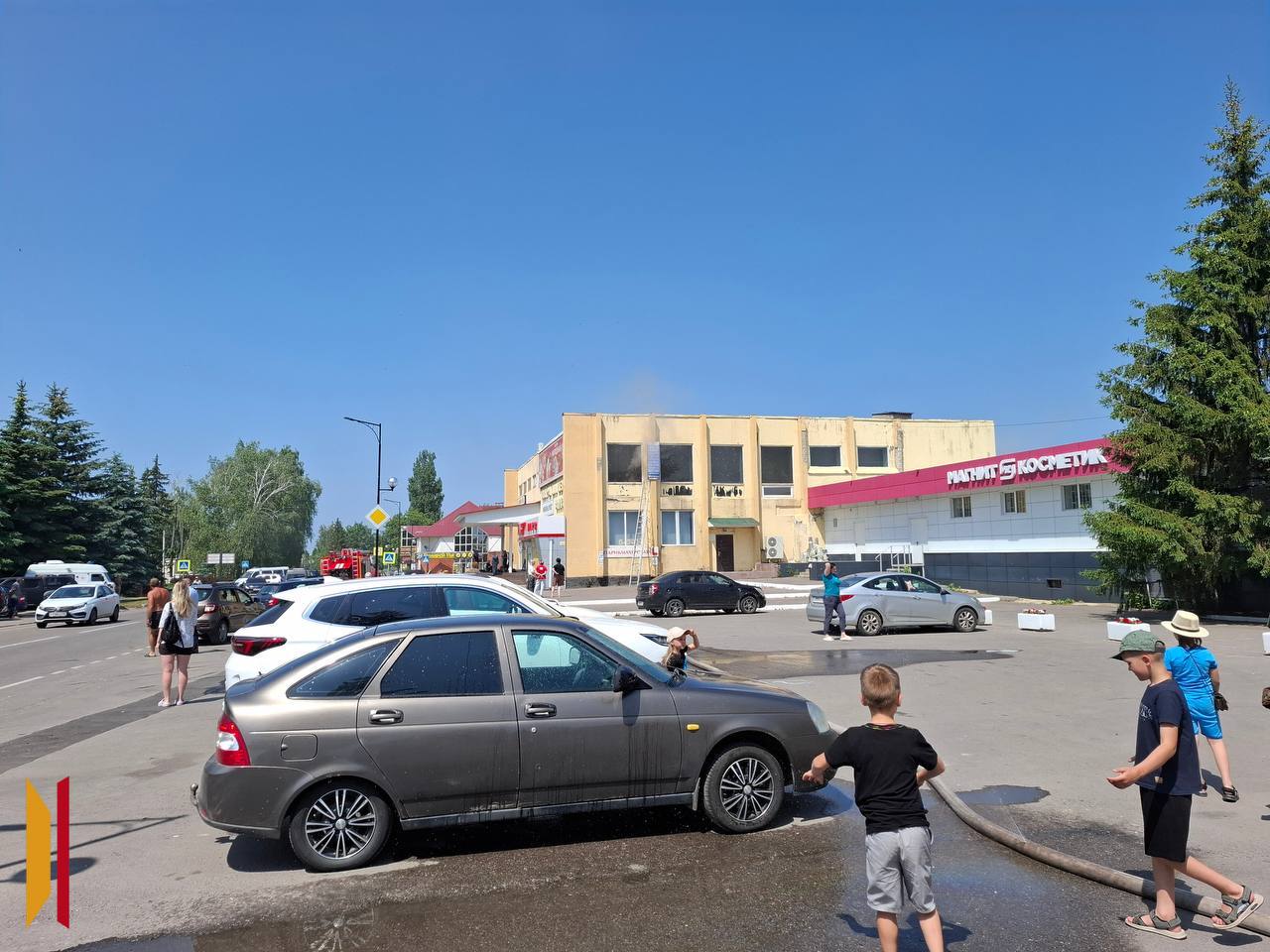 На втором этаже небольшого ТЦ расположены магазины с одеждой и другими вещами. Корреспондент связалась с диспетчером, который сообщил, что звонок о пожаре поступил дежурному диспетчеру около 9:27. Звонивший не представился, сообщил о возгорании и сбросил звонок. К зданию съехались семь пожарных расчетов.
