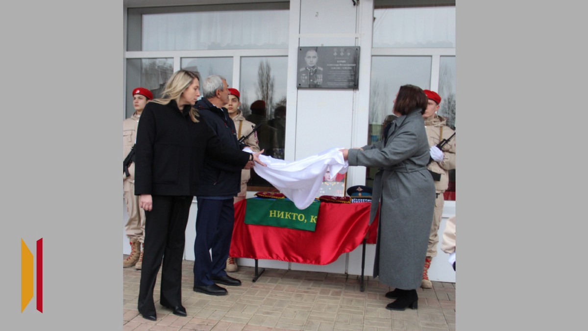 Почетное право открыть мемориальную доску предоставили отцу героя Вячеславу Курину, его вдове Наталье Куриной и главе Новоусманского района Татьяне Леонтьевой.