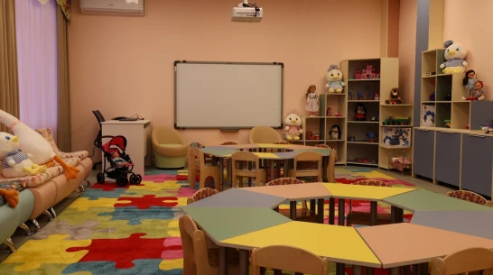 В помещении детсада оборудовали две спальни, игровые зоны, пищеблок. На улице сделали прогулочные площадки с игровым оборудованием. Новое дошкольное учреждение посещают 20 детей в возрасте от трех до семи лет.