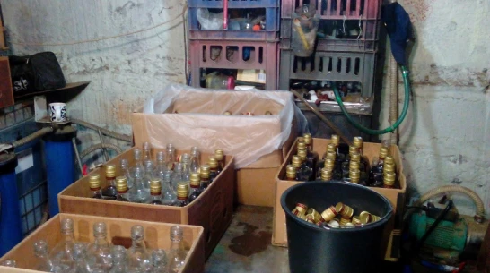 Мужчины изготавливали алкоголь на складе в Воронеже. У них не было ни лицензии, ни других разрешительных документов. При обыске у бутлегеров нашли оборудование по изготовлению и розливу алкоголя в бутылки, стеклянную тару, а также пробки.