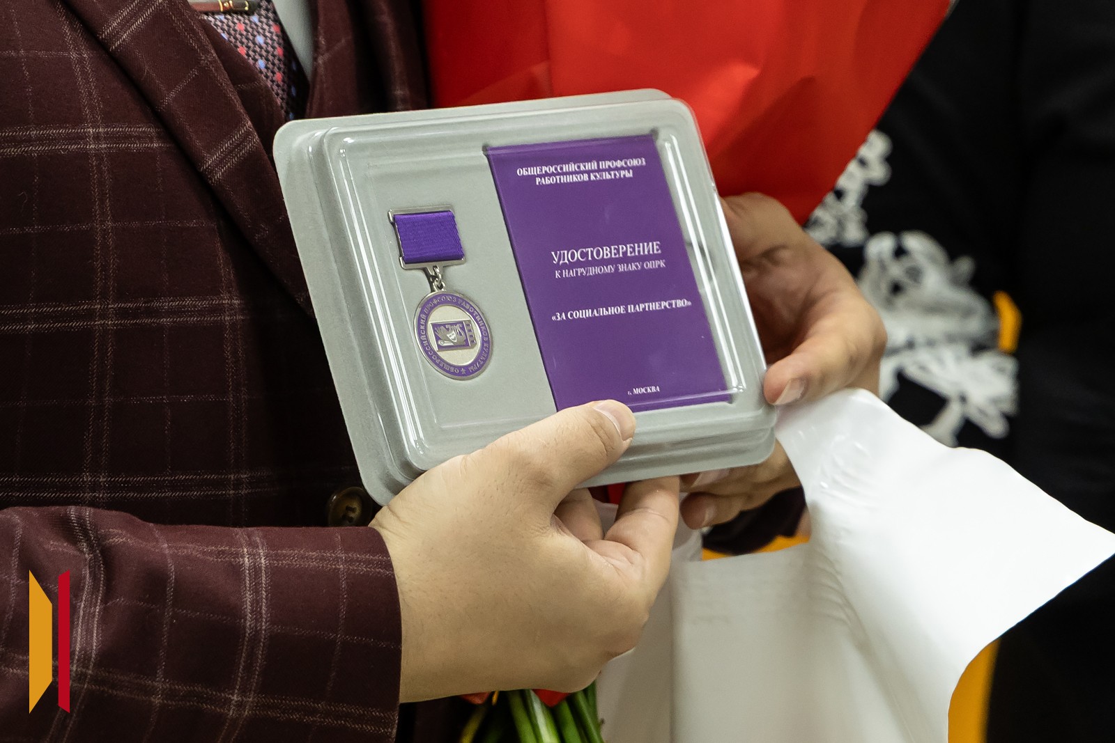Генеральному директору холдинга РИА «Воронеж» Наталье Филь вручили нагрудный знак «За социальное партнерство» от Общероссийского профсоюза работников культуры. Награду гендиректору холдинга передал председатель Воронежского областного комитета профсоюзов Константин Мысков.