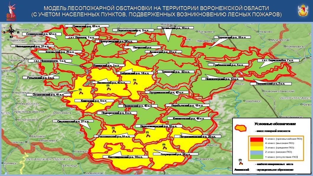 Согласно оперативному прогнозу возникновения и развития чрезвычайных ситуаций на территории Воронежской области на 22 июня, по условиям погоды на территории девяти муниципальных образований наблюдается III класс пожарной опасности (средняя степень). На остальной территории области установился I класс пожарной опасности (отсутствие пожарной опасности).
