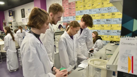 На первом этаже центра «Орион» вовсю кипела работа у участников, выбравших направление «Агрохимия». Их наставником выступил Роман Иванов, который следил за безопасностью и правильностью выполнения экспериментов. Он отметил, что при составлении кейсов методисты старались предложить участникам обратиться к актуальным методам химического анализа, которые применяются в сельском хозяйстве.