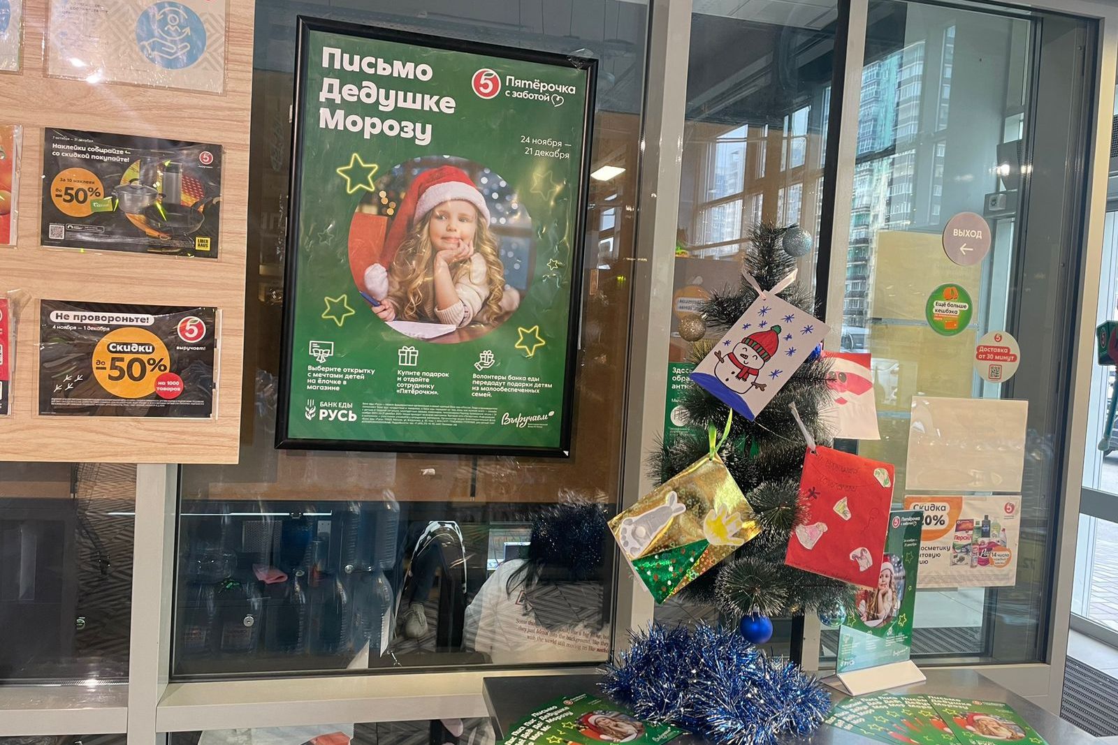 В 2025 году в 208 магазинах «Пятерочка» установят новогодние елки, украшенные открытками-письмами. На каждой карточке ребенок рассказывает о своей мечте: это могут быть игрушки, наборы для творчества, сладости или другие подарки. Гости могут выбрать открытку, приобрести указанный презент и передать его сотрудникам ритейлера, чтобы к празднику все письма обязательно нашли своего Деда Мороза.
