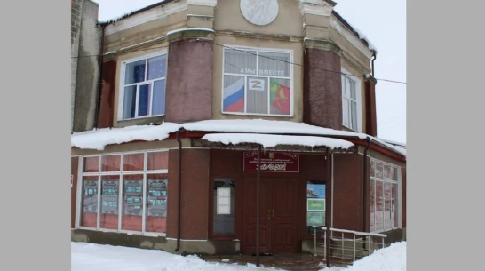 Сотрудники музея наклеили на окно второго этажа латинскую букву Z и разместили флаги: российский и Таловского района, а также надпись #МыВместе.