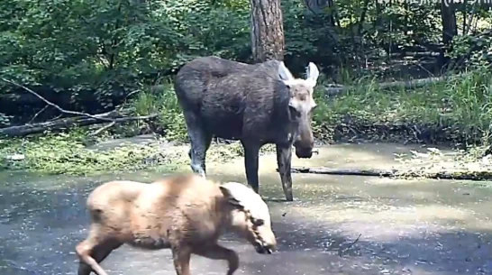 – Водоем посещают несколько лосих со своим потомством. У одной из них два детеныша, лосята без устали резвятся возле своей матери, что тут скажешь – дети есть дети, – говорится в подписи к видео.