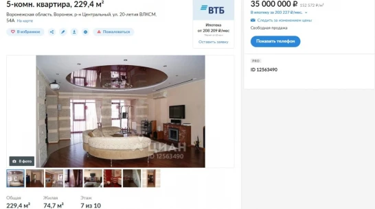 Максимальная цена за квартиру в Воронеже – 35 млн рублей. Она возглавила топ-10 самого дорогого жилья на вторичном рынке, рейтинг составили сотрудники компании ЦИАН.
