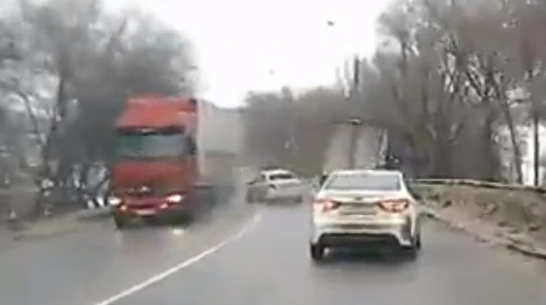 На кадрах записи видно, что иномарка пошла на обгон, но водитель потерял управление. Машину ударило об ехавший в том же направлении грузовик, а потом отбросило под колеса встречной фуры.