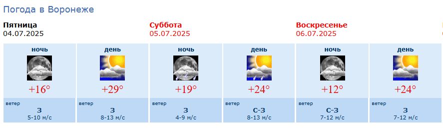 Подробный прогноз погоды на новую рабочую неделю читайте на портале РИА «Воронеж» в понедельник, 7 июля.