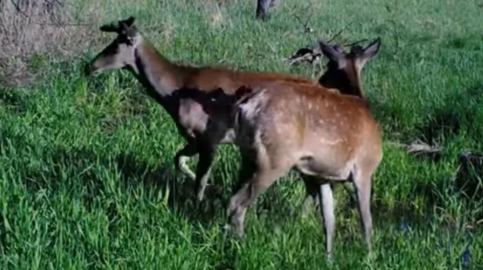 Битва между двумя самцами европейских благородных оленей в Воронежском заповеднике попала в объективы камер. Видеозапись опубликовали на сайте заповедника в понедельник, 16 октября. На ней запечатлена не только схватка, но и другие моменты из жизни животных: игра оленят, поход животных к водопою.