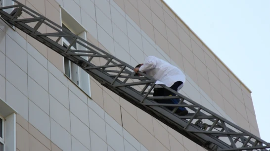 По легенде, в кабинете дежурного акушера отделения патологии беременности замкнуло удлинитель. От удлинителя загорелась мебель, дым распространился по этажу четвертого блока больницы. Спасатели выехали к месту «пожара» - дому №105 на Московском проспекте. Пожарные спустили людей с пятого этажа с помощью автолестницы и ликвидировали условное возгорание.