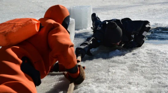 Если человек провалился под лед, следует подползти по-пластунски к полынье на расстояние 3-4 м. Затем нужно протянуть веревку, шест, доску, шарф. Подавать руку небезопасно, поскольку нагрузка на лед увеличится. Пострадавшего необходимо укутать в сухую одежду или одеяло.