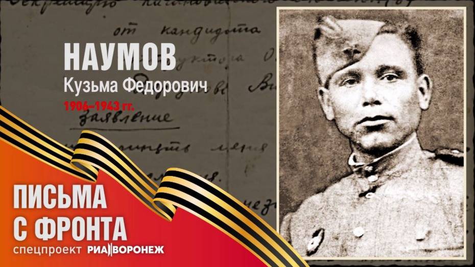 У его семьи остались лишь одно письмо и почтовая карточка, которые он отправил с фронта жене Марии и своей тете – Евдокии Ивановне. Эти строки гвардии старший лейтенант Кузьма Федорович Наумов написал 11 ноября 1942 года. Письмо читает начальник отдела SMM РИА «Воронеж» Елизавета Кодацкая.