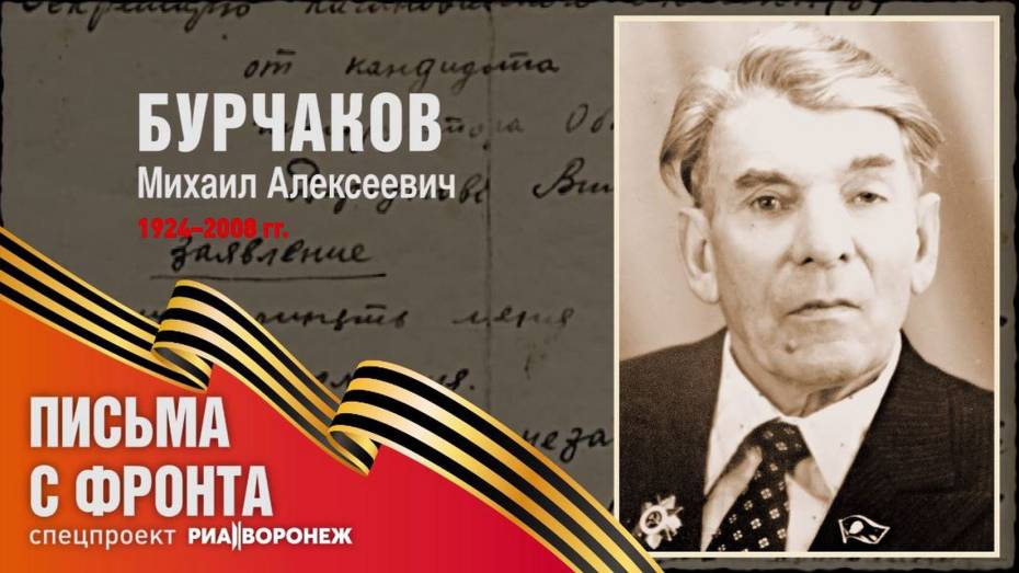 Михаил Бурчаков родился в селе Латное Семилукского района Воронежской области в 1924 году. Во время войны переправлял наши войска на катере на левый берег Воронежа, который фашисты так и не взяли. А потом ушел на фронт, воевал на «катюшах». Прошел с боями от Курской дуги до самого Берлина. В мае 1945 года солдат вернулся с фронта в звании ефрейтора, был награжден медалями «За боевые заслуги», «За отвагу», «За взятие Берлина». Михаил Алексеевич прожил долгую жизнь. Умер 8 августа 2008 года в возрасте 84 лет.