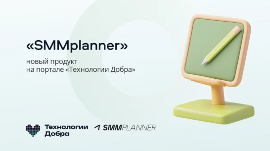 Некоммерческие организации, участники проекта «Технологии Добра», получают доступ к профессиональному тарифу SMMplanner бесплатно. В рамках этого тарифа доступны такие функции, как автопостинг, AI-ассистент для генерации текстов и идей, аналитика публикаций, готовые шаблоны для оформления контента и удобный редактор изображений.