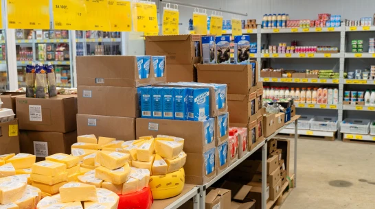 Магазин работает по принципу продсклада: товары расположены в торговом зале на паллетах и стеллажах в заводских упаковках, что позволяет использовать всю площадь торговой точки, не переплачивая за выкладку и дополнительные помещения. Компания сотрудничает с местными и федеральными производителями напрямую, не тратя времени и денег на посредников. Торговая сеть ПОБЕДА рационально подходит к собственным тратам, чтобы обеспечить низкие цены для покупателей.
