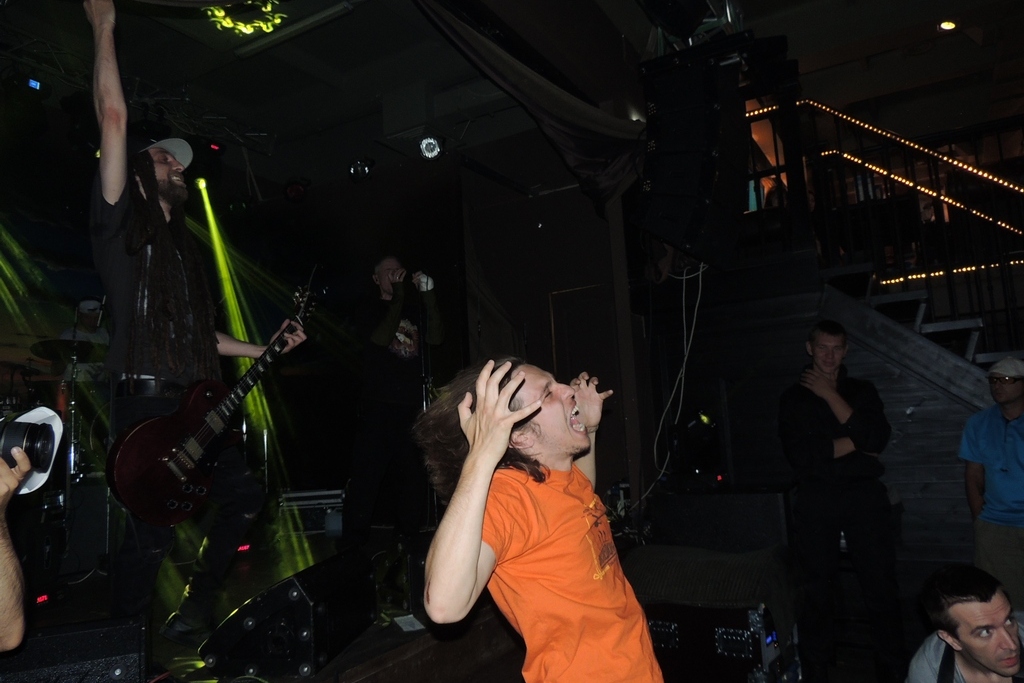 Дважды просить не пришлось: на танцполе вмиг образовалась оживленная кучка людей, концерт перетек в хмельную дискотеку, вспотевший Мурик выкинул бейсболку, Дизель еще усерднее стал прыгать по сцене, размахивая метровыми дредами, а настырная девица, опустошив-таки бокал, в порыве чувств выразительно прокричала: «Молодцы! Просто офигительно!». Мурик показал ей пальцем «класс!».