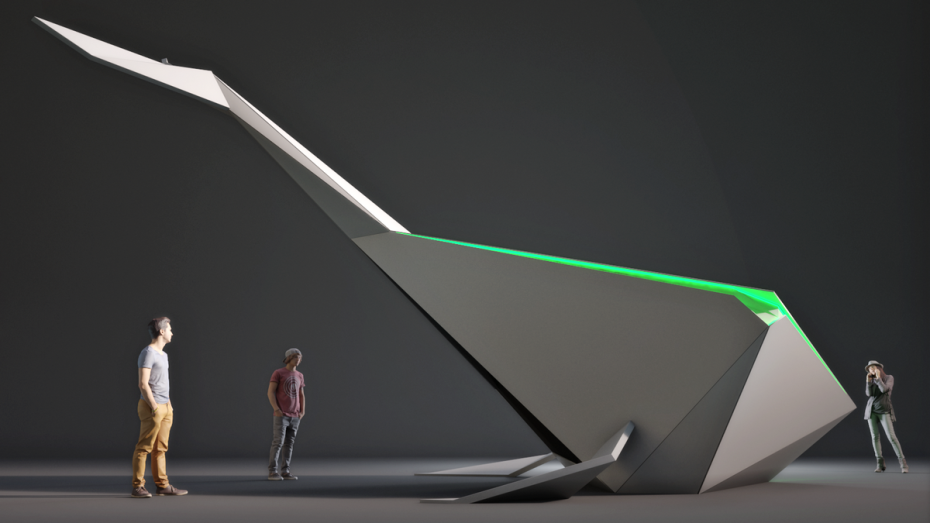 – Изначально предоставили три концепции: врезающийся в землю метеорит, зеркальный куб и модульная секция космического характера. Но нужна была большая привязка к мероприятию, где будет находиться объект. Не желая отступать от концепции неординарного использования проектора и экрана, мы создали конструкцию в форме кита. Мне в целом близка морская тема, и само структурное решение – это мои последние творческие изыскания, – рассказал художник проекта Антон Муковников.