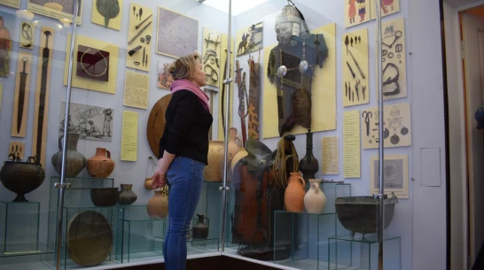 В основе экспозиции – экспонаты, найденные во время археологических раскопок на территории Прихоперья. Посетители смогут увидеть кости мамонта, найденные в районе села Чигорак в 1930-е годы, и череп шерстистого носорога.
