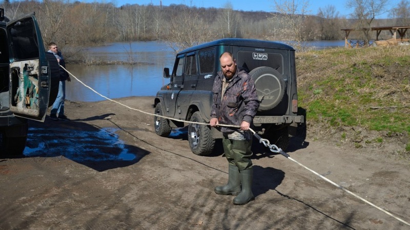 ЧП случилось в районе понтонного моста в субботу, 14 апреля. Во время разлива реки «Нива» заехала на середину водоема. Автомобиль поднимали 1,5 часа.