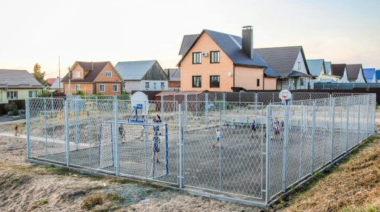 На площадке можно играть в футбол, баскетбол, гандбол. В октябре здесь планируют установить спортивные тренажеры.