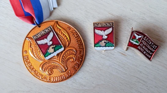 Это депутатские значки и удостоверения, а также ряд памятных знаков: медали почетным жителям, семейным парам-юбилярам и новорожденным жителям поселения. Почти на всех присутствует главный символ бодеевской земли – герб, который официально учредили в Союзе геральдистов России в 2020 году.