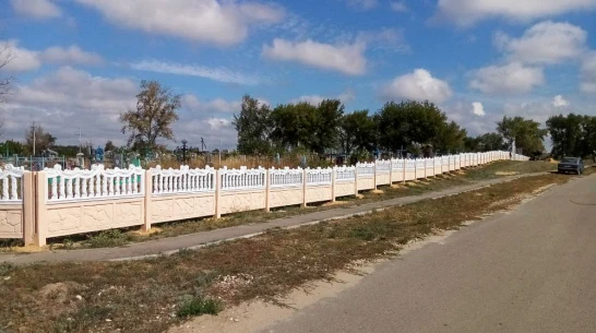 Новое ограждение – еврозабор из 280 железобетонных плит и 150 столбов установили с трех сторон кладбища. Длина ограждения составляет 280 м, высота – 1 м. Для входа сделали центральные металлические ворота с аркой шириной 3,5 м и две калитки.