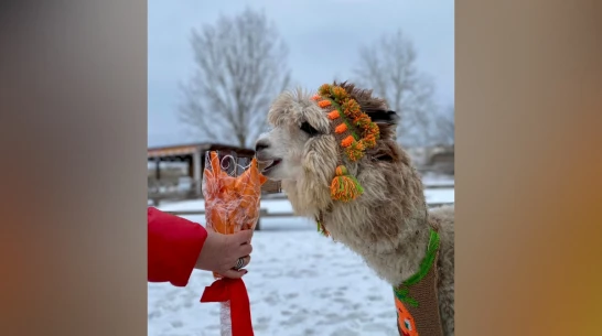 В Международный женский день без внимания не остались альпаки в Белом колодце в Воронежской области. Животных порадовали особенным букетом – вместо цветов в праздничной упаковке «дамам» преподнесли морковь.