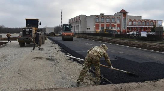 Строители убрали грунт, сделали песчаную и щебеночную подушки под будущие объекты, отсыпали дополнительно отсевом участок под футбольное поле. Оно будет с искусственным покрытием. Также установили систему водоотведения, заасфальтировали беговые дорожки и автостоянку, частично уложили брусчатку. Работы завершат до июля 2026 года.