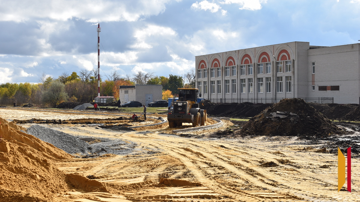 – Строители ведут сейчас земляные работы: убрали грунт, делают песчаную и щебеночную подушки под будущие объекты, устанавливают систему водоотведения, – рассказал Владимир Кальченко. – Специалисты подрядной организации частично спилили аварийные деревья, что также предусмотрено проектом. На стадионе обустроят футбольное поле размером 100 х 60 м с искусственным газоном, четыре беговые дорожки со специальным покрытием, спортивный городок, установят трибуну на более чем 200 мест, ограждение.