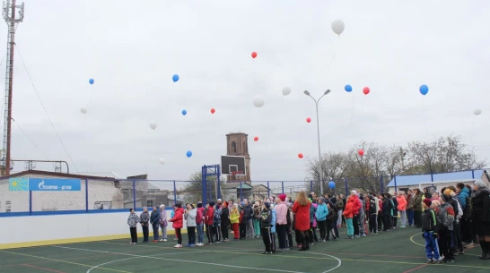 Это одна из многофункциональных площадок, построенных по программе «Газпром – детям». На ней есть специальное резиновое покрытие, позволяющее заниматься футболом, баскетболом, волейболом в теплое время года и хоккеем, фигурным катанием – зимой. Здесь установили баскетбольные щиты и футбольные ворота.