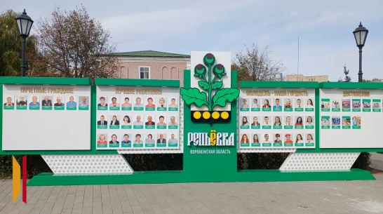 – В советские годы на площади Победы стояли доски почета. Мне захотелось возродить эту традицию. При создании макета доски мы придерживались цветовой гаммы, используя брендовые оттенки Репьевки, аналогичные тем, что есть в витражах и на стеле у въезда в село. В центре доски расположили наш знаменитый репейник с колючками в пурпурных тонах, согласно геральдике. Также смонтировали подсветку для эффектного вида. Реализация проекта стала возможной благодаря поддержке спонсоров, – рассказала Анна Ярмонова.