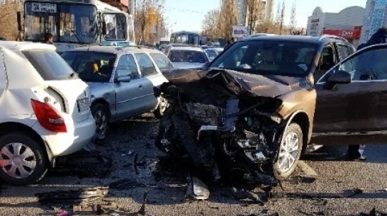 Столкновение машин произошло около 14:20. По предварительным данным, автомобиль Toyota ехал по улице Димитрова и врезался в Chevrolet и Skoda. От удара последнюю иномарку отбросило на встречную полосу. Там она столкнулась с Ford Mondeo и Volkswagen Touareg. В аварии пострадала 30-летняя женщина – водитель Skoda.