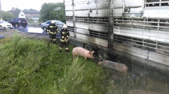 В Тверской области на Московском шоссе грузовик со 100 свиньями, ехавший в Воронеж из Бежецка, врезался в отбойник, сообщило издание twernews.ru в четверг, 28 июля. В результате ДТП фура загорелась, часть животных погибла, часть - разбежалась по окрестностям.