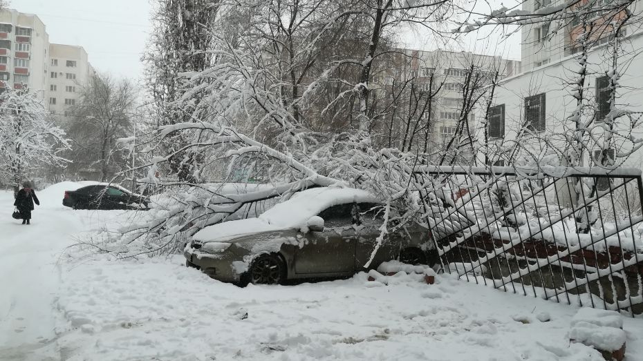 В Воронеже из-за сильного снегопада утром рухнуло несколько десятков деревьев: 9 зависли на проводах, 12 упали на проезжую часть, а 22 – на автомобили в Воронеже. Еще два дерева свалились на соседние, одно упало на территории детского сада, а два рухнули на тротуары. Об этом корреспонденту РИА «Воронеж» рассказали в городской службе спасения в пятницу, 4 марта.