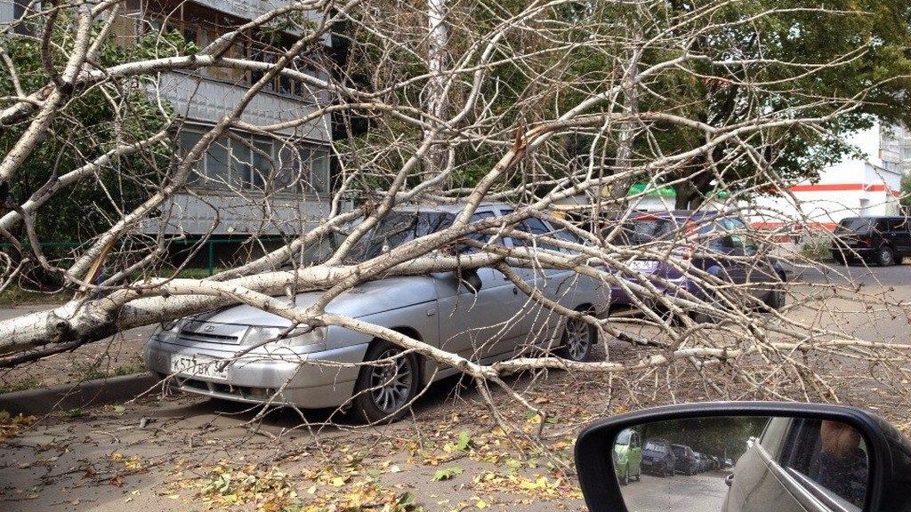 По словам очевидца Юлии Войновой, дерево рухнуло на автомобиль из-за ветра.