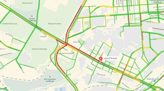 Воронежцы пожаловались в соцсетях на крупную пробку, которая собралась в районе развязки на пересечении улиц 9 Января, Антонова-Овсеенко и Героев Сибиряков вечером в понедельник, 16 апреля. По данным сервиса Яндекс.Пробки на 19:00, заторы образовались на четырех участках дороги: два на 9 Января и по одному на улицах Антонова-Овсеенко и Героев Сибиряков. Каждый длиной около 1,5 км. Средняя скорость движения автомобилей на этих участках – 5 км/ч.