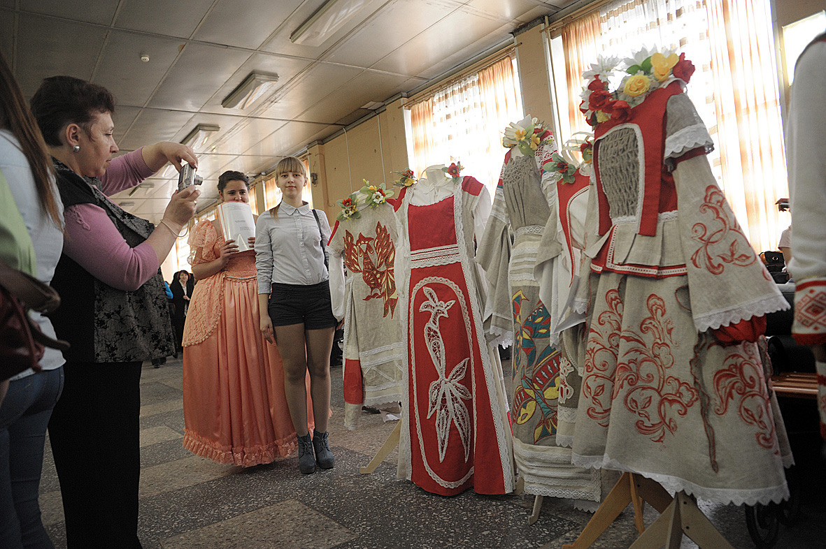 Русский народный костюм уже является «коньком» воронежской десятиклассницы Веры Черных, которая точно знает, что будет дизайнером одежды. Она представила жюри национальный костюм, изготовленный на вязальной машинке.