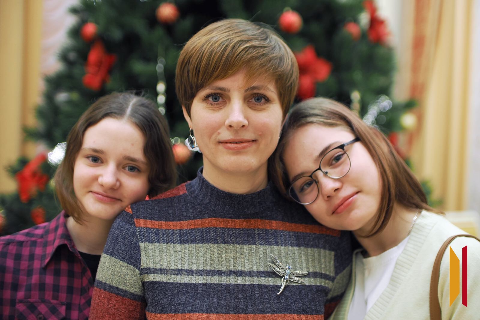 Среди швей второе место – у Татьяны Осиповой. Женщина признается, что ее стаж работы равен сроку проведения конкурса – 20 лет. Татьяна Осипова начинала рукодельничать и шить еще в школе на уроках труда. Сначала это были платья для кукол, а теперь ей под силу одежда для дочек, которые пришли поддержать маму на награждении.