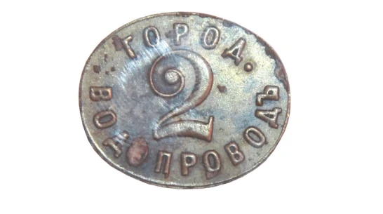 Будущий музей воронежского водоканала пополнился цинковым жетоном на два ведра воды конца XIX – начала XX веков. Жетон сохранился в хорошем состоянии, и в дальнейшем будет выставлен в историческом уголке водоканала.