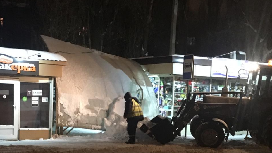 Навес павильона на остановке в Воронеже обрушился под тяжестью снега вечером в воскресенье, 27 января. Фотографию инцидента опубликовали в социальных сетях.