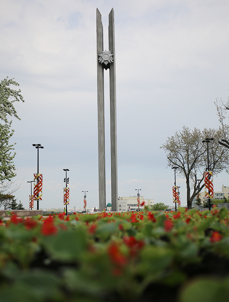 Площадь уже озеленили, посадив более 11 тыс. бегоний и цинерарий. На склоне также высадили 500 кустов девичьего винограда, чтобы закрепить грунт. Появился и газон – более 4 тыс. кв. м. Территорию оснастили системой автополива.