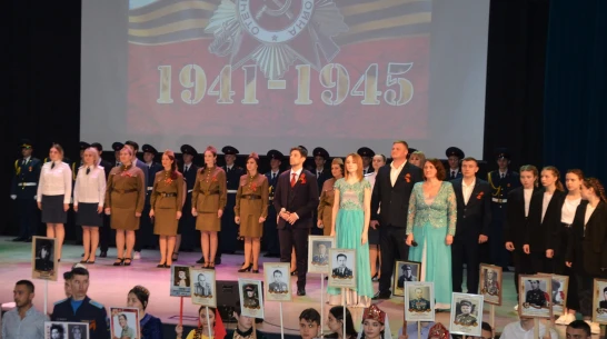 В завершение легендарную песню «День Победы» исполнили все участники концерта, в это время к сцене спустились студенты разных национальностей, держащие в руках портреты героев Великой Отечественной войны.