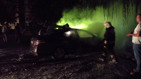 Автомобили Nissan Teana и ВАЗ-2121 загорелись на Московском проспекте в понедельник, 23 июля. Машины были полностью уничтожены огнем.