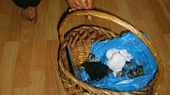 Наркоделец прятал наркотики в корзине, стоящей на платяном шкафу, а также в диванной нише.