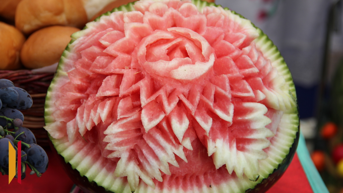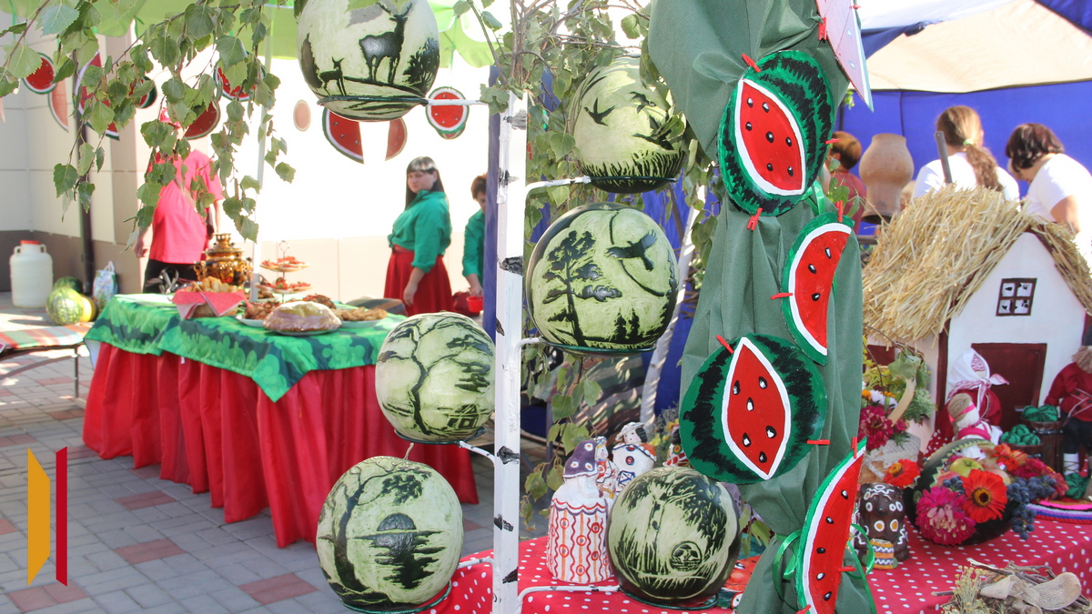 На фестивале арбузу посвятили буквально все – от нарядов, названий конкурсов, поделок и сувениров до ярко оформленных подворий сельских поселений. Местные хозяйки приготовили угощения из бахчевых культур.