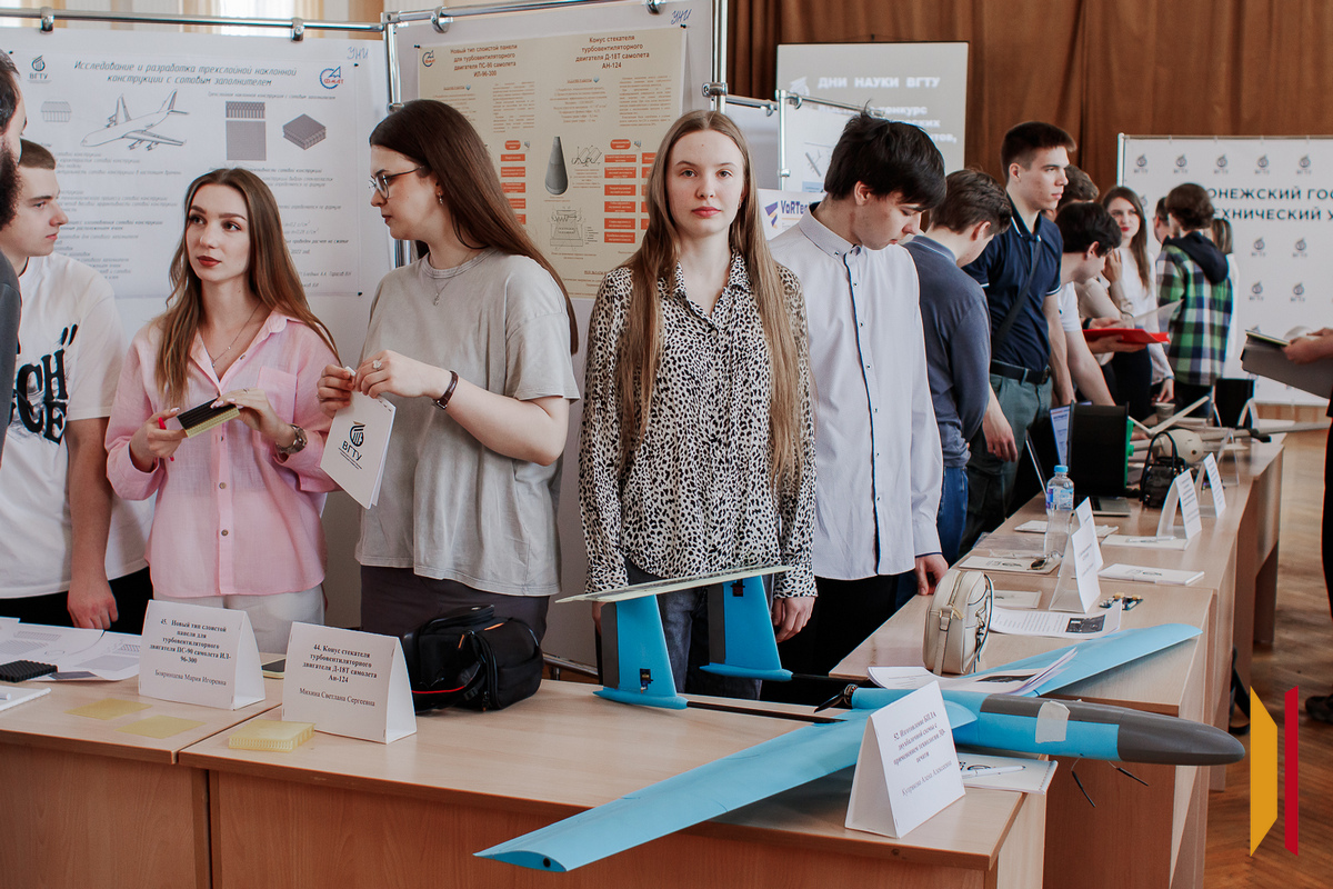 Свои разработки представили будущие специалисты со всех факультетов опорного вуза, а также ученики строительно-политехнического колледжа при ВГТУ. Например, студентка второго курса направления «Самолетостроение» Алена Купрянова презентовала проект двухбалочного беспилотника.