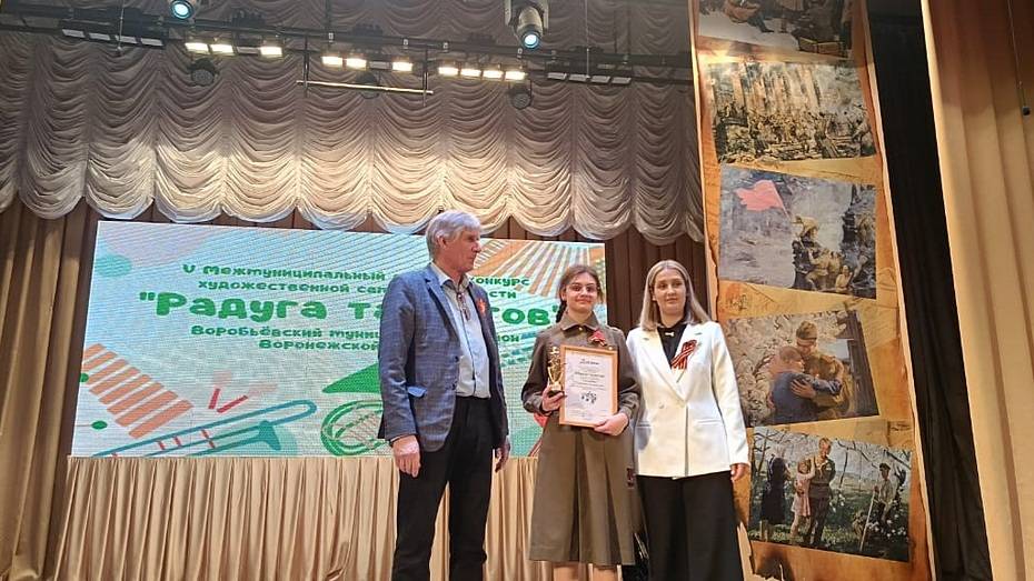 Участница художественной самодеятельности верхнемамонского Дома культуры, 15-летняя Александра Токарева, стала лауреатом I степени на V Межмуниципальном детском конкурсе художественной самодеятельности «Радуга талантов». Он прошел в селе Воробьевка в пятницу, 11 апреля. Об этом корреспонденту РИА «Воронеж» сообщила художественный руководитель РДК Юлия Трунова.
