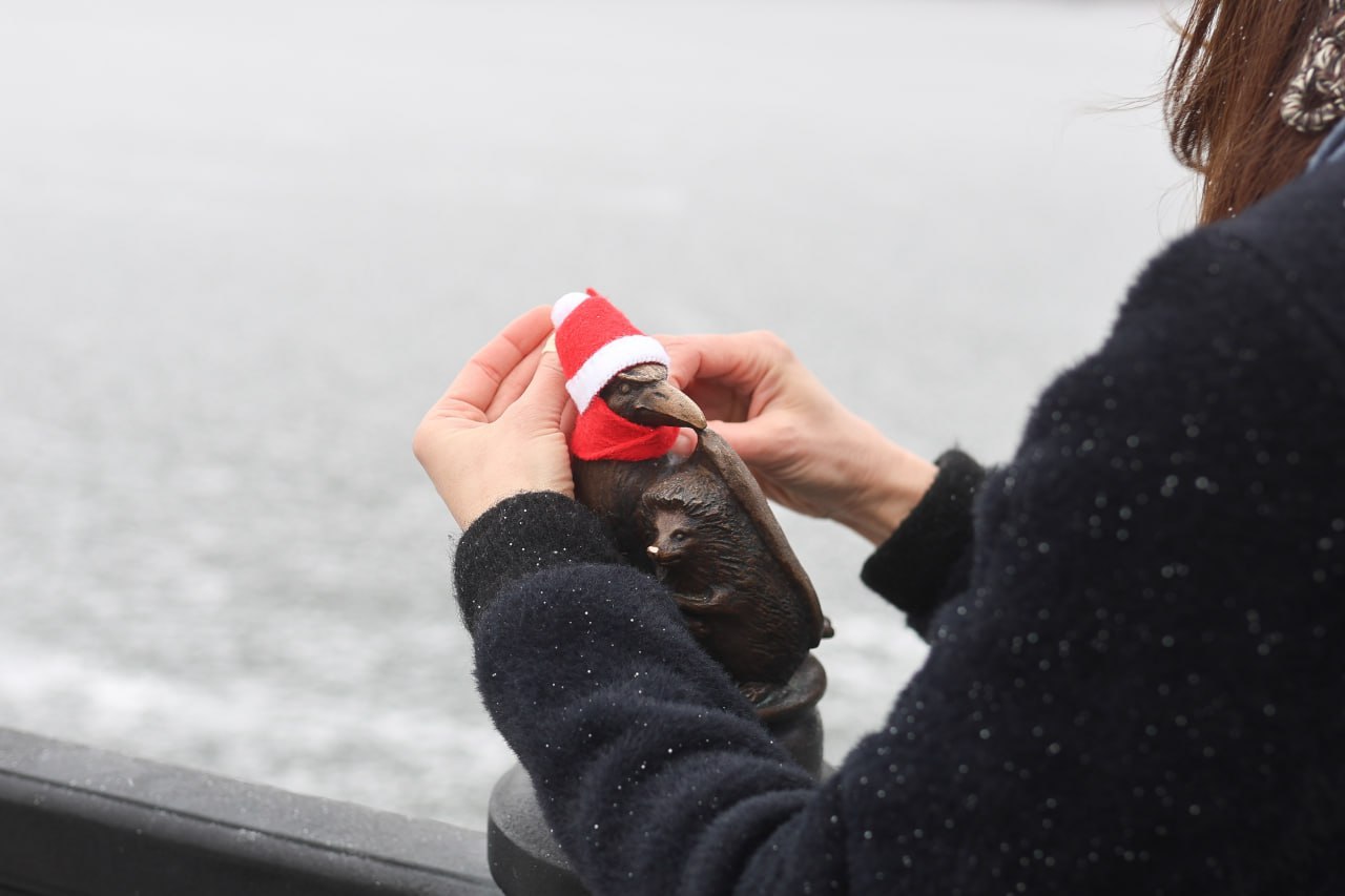 Ворон и еж на Петровской набережной Воронежа обзавелись новогодними костюмами: красной шапочкой с помпоном, шарфом и мешочком для подарков с надписью #люблюВоронеж. Об этом рассказал мэр Воронежа Сергей Петрин.